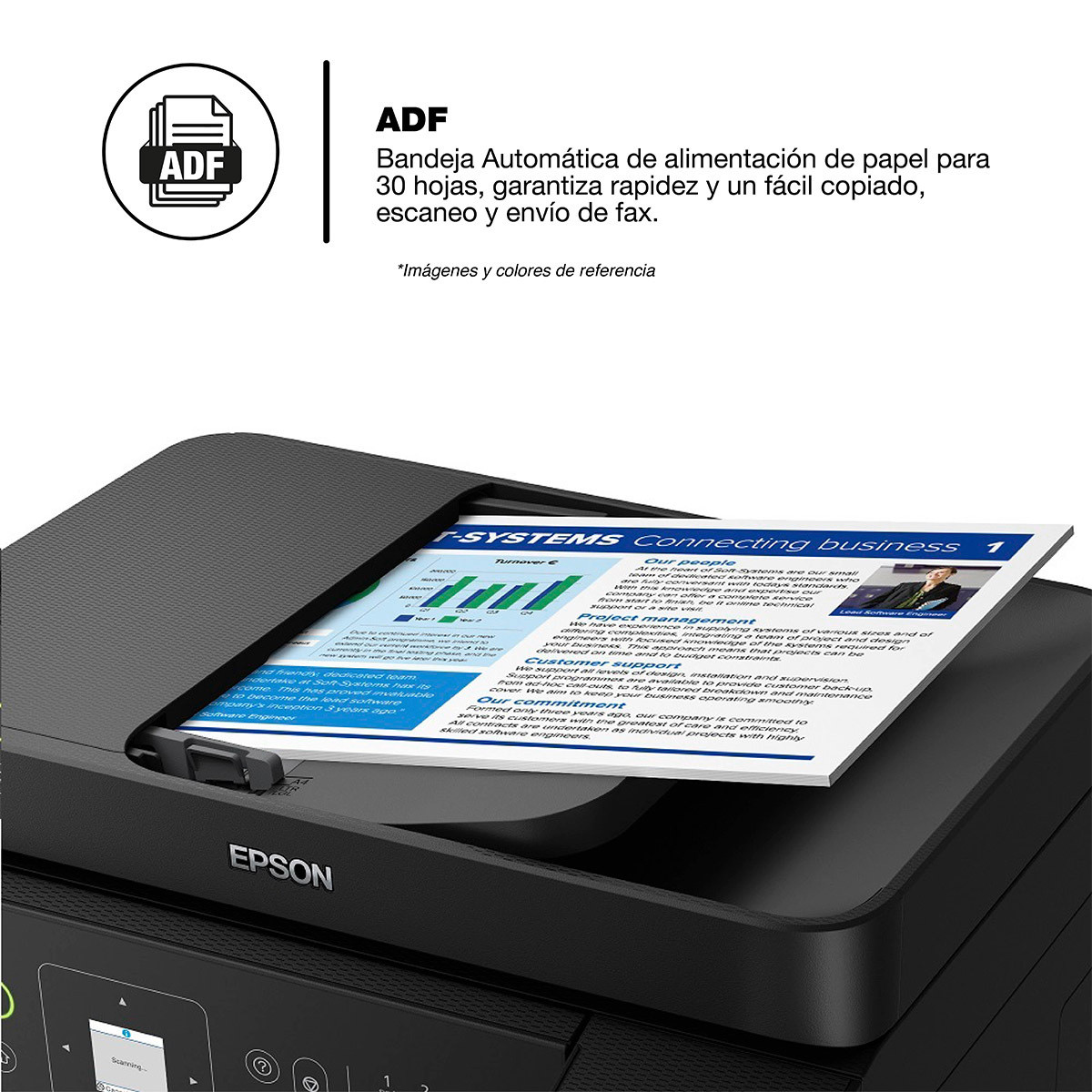 Para muchos Usuarios de Trabajo no es suficiente la confiabilidad de EcoTank, pero también tienen la expectativa de resultados más rápidos e inmediatos llevar acabo su trabajo. La EcoTank L5590 va más allá de la confiabilidad y eficiencia que espera de EcoTank para ofrecer velocidades de impresión 50% más rápidas sin sacrificar calidad de impresión3 con la tecnología Heat-Free PrecisionCore. Incremente mas aún su productividad simplificando tareas frecuentes de copiado / escaneado con su alimentador de documentos de 30 páginas; y pogra compartirla en cualquier red via Wi-Fi o Ethernet. Lleve consigo toda la conveniencia y productividad a cualquier lugar con Epson Smart Panel para imprimir y sacar provecho de la productividad de su EcoTank desde su dispositivo móvil.