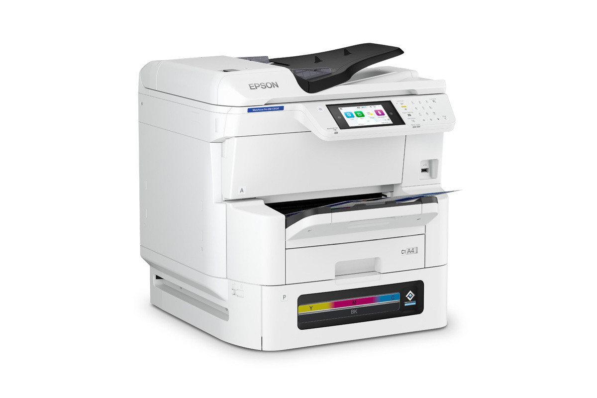 La impresora multifuncional WorkForce® Pro EM-C8100 ofrece versatilidad para los grupos de trabajo, con velocidades de impresión de hasta 25/24 ppm ISO† (negro/color) con calidad profesional, escaneo dúplex de hasta 45 imágenes por minuto. Con la revolucionaria tecnología PrecisionCore™ Heat-Free, está diseñada para ofrecer una fiabilidad excepcional, alto rendimiento de tinta junto con un bajo consumo de energía.
